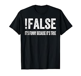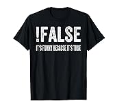 It's funny because it's true! Get this funny programming Design for your programmer and coder friends! This !false programming Design makes a great gift for all the computer science and computer engineering and software engineering students! Lightweight, Classic fit, Double-needle sleeve and bottom hem