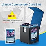 Stepane MTG Deck Box, Double Display Window MTG, Commander Deck Box Fits 120+ Single Sleeved Cards, PU Leather Magnetic Closure Card Box with 2 Dividers&2 Toploaders for TCG, CCG, Black/Blue