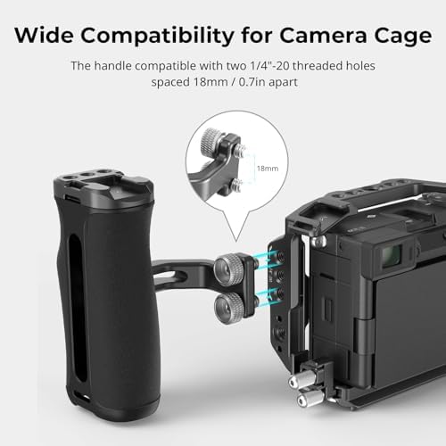 - Wide Compatibility: SmallRig Mini Side Handle with 1/4" -20 Screws 4756 compatible with two 1/4"-20 threaded holes spaced 18mm / 0.7in apart, making it highly versatile. At the same time, the maximum load-bearing capacity of the handle is up to 6kg / 13.2lb