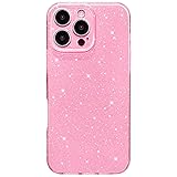 Hython Case for iPhone 16 Pro Max Case Glitter Cute Sparkly Shiny Bling Sparkle Phone Cases 6.9", Thin Slim Fit Soft TPU Bumper Shockproof Rubber Protective Cover for Women Girls Girly, Bright Pink