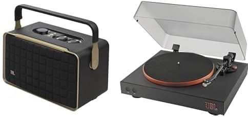 Enjoy retro style, amazing audio, and built-in dual voice assistants* anywhere in your home. With the JBL Authentics 300 speaker's leather-like enclosure, convenient metal handle, and built-in rechargeable battery, you can take your music with you—from the kitchen for your dinner-prep playlist to the bedroom for your wind-down podcast. Its retro '70s-inspired design featuring the iconic Quadrex grille makes a bold statement anywhere you set it down. And so do its wide soundstage, crystal-clear highs, and deep bass. With Google Assistant and Amazon Alexa available simultaneously*, you can play your favorite music, control your smart home devices, and more, hands-free, using just your voice. Hear an instant connection to your record collection using Bluetooth to pair quickly to your portable speakers, soundbar or headphones for vinyl playback wirelessly. Using aptX™ HD encoding, there is no sonic compromise. The sound from your records is as good as with wires. The JBL Spinner BT includes analog outputs for existing Hi-Fi systems, with a phono pre-amp built in for use with active speakers. Using an aluminum platter and tonearm, the JBL Spinner BT is testimony to the joy of music and vinyl records. Records are played in perfect time at 33 ⅓ rpm for LPs and 45 rpm for EPs and singles. Speeds are locked with a speed sensor for perfect pitch. The tonearm features a high-quality moving magnet cartridge pre-installed on a removable head shell for easy replacement and upgrade. The feet are damped to reduce unwanted vibration masking your music. This all gives you the best sound from your records, without wearing them out.