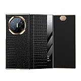 HAO RIYLN Case for Huawei Mate XT, Window View Function Genuine Leather Flip Cover Luxury Crocodile Pattern Folio Full Body Shockproof Case Shell,Black,Mate XT
