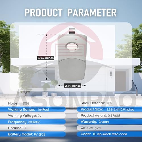 - **Compatible List**: Compatible with All 300MHZ 10 Dip Switch Multi code Gate Opener Multicode Garage Door Opener Remote 3089 MCS308911,3060 MCS306010,3070 MCS307010.