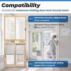Cost-effectiveness and Safety -- Upgrade your home security without the hefty price tag of a new sliding door. The Aluminum Tribeca Style Gliding Door Thumb Latch offers a cost-effective solution by replacing your old and worn lock latch, enhancing security for your living space while saving you money. Compatible with Andersen Sliding Door Locks -- Thumb latch is specifically designed to fit Andersen sliding door locks, including 200 Series Narroline Gliding Doors (2002 to Present), Frenchwood Gliding Doors (1987 to Present), and Perma-Shield Gliding Doors (1982 to Present). Manufactured for durability, this latch is your perfect replacement. High quality -- Andersen sliding door extension replacement latch are made of highly durable materials, carefully crafted, durable and tested in multiple processes before leaving the factory to ensure their quality is up to standard. It's built to withstand everyday use while ensuring a secure fit. Easy Installation -- Installation is quick and easy, simply use a screwdriver to replace your old latch, making it an ideal choice for anyone seeking a quick upgrade to their Andersen sliding glass door. Package Includes -- Each package comes with 1 pack of the Andersen gliding door thumb latch and 2 screws. If you encounter any issues, please don't hesitate to contact us, and we will assist you as soon as possible.