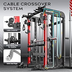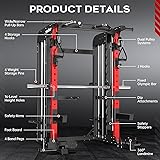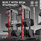 pooboo Multi-Functional Machine Power Cage, 2000LB Squat Rack, LAT-Pull Down System, Dual Pulley Cable Crossover System, Home Gym Workout Machine with Strength Training Attachments