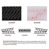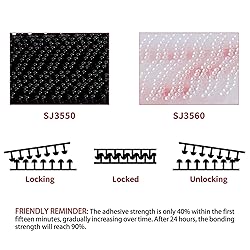 HEAVY DUTY ADHESIVE TAPE: 2in × 4in 8pcs pieces SJ3560 black hook strips. Long-term temperature resistance: 93°C (200°F), short-term temperature resistance: 149°C (300°F). Interlocking mushroom-shaped heads (250 stem density per square inch) provide strong, reliable, and enduring fastening that can be opened and closed multiple times. MULTI-FUNCTIONAL APPLICATION: The reclosable fastener can be repeatedly sealed and fast-built, having a wide range of applications, which can replace traditional fixing methods such as screws, nuts, or bolts. It can adhere to various substrates, including plastic, metal, glass, and painted surfaces. EASY TO USE: No need for any drilling, screwing, or sewing tools, which ensures quick installation. The strong mounting tapes secures with an audible snap, verifying closure. After installation, it reaches 50% of its final strength in about 20 minutes, 90% in 24 hours, and 100% in 72 hours. Before use, clean the bonding surface and avoid touching the adhesive layer for optimal bonding effectiveness. ADVANTAGE: This solid, pressure-sensitive foam tape features a strong, Long-lasting bond that is heat, chemical, and UV resistant. Suited for indoor and outdoor use. It will be ideal for various applications, including holding an EZ pass, hanging pictures, attaching classroom whiteboards, securing power outlet strips, decorating cars, displaying office signs, and securing cushions. INVISIBLE & AESTHETIC: A lightweight alternative to metal fasteners, this product remains hidden beneath surfaces and does not interfere with the integrity of your material—providing aesthetic improvements and design flexibility.