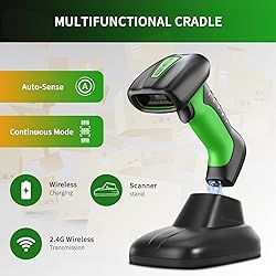 [Industrial-Grade Waterproof, Shock & Dust Protection] The NETUM NT-1950 offers an IP67-rated dust, splash, and waterproof design. Its rugged construction and durable silicone casing protect it from damage, even with drops from up to 12 ft. (3.65 m). The integrated housing shields the scanner from heavy dust, making it ideal for tough environments and demanding work conditions. [Dual Connectivity: 2.4G Wireless & Bluetooth] This barcode scanner supports both 2.4G wireless and Bluetooth connections. The included charging dock has a built-in 2.4G receiver, allowing for easy plug-and-play functionality. The scanner also supports Bluetooth connections in HID, SPP, and BLE modes, making it compatible with a wide range of devices, including laptops, PCs, smartphones, tablets, iPhones, iPads, and POS systems. [Automatic Scanning & Storage Mode] The NT-1950 supports three scanning modes: manual trigger, continuous scanning, and auto-sensing, for both handheld and hands-free operation. It also features a storage mode for situations where Bluetooth or wireless connections are unavailable, with storage capacity for up to 100,000 barcodes. Note: Before using, scan the corresponding configuration barcode from the user manual. [Advanced Scanning Capabilities] Equipped with a 1280H × 800V (1M) CMOS sensor, the NT-1950 delivers fast scanning speeds with a maximum frame rate of 60 FPS. It can read even small barcodes with high precision: 1D barcodes ≥4 mil, 2D barcodes ≥5 mil (HD). This scanner is perfect for use in industries such as electronics manufacturing, medical equipment, intelligent manufacturing, and more. [Extended Battery Life] Powered by a robust 2600mAh battery, a full charge allows for up to 30 days of use (assuming 2,000 scans per day). The cradle also functions as a charging station, ensuring that your scanner is always ready for use when docked. NETUM backs this product with a 1-year warranty from the date of purchase. If you encounter any issues, please contact us for assistance.