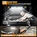 【Flexible Dual-Light Design】: The rechargeable underhood work light can be used as two independent handheld lights or connected together via the top male-female lock, for a more powerful unit and a higher brightness, providing up to 2400 lumens of high brightness. The magnetic work light perfect for a range of scenarios from close-up repairs to broad area illumination, making it an adaptable tool for both detailed and expansive work settings. 【Upgraded Sensor Control with 3 Brightness Modes】: The under hood work light is equipped with an infrared sensor, you can activate or deactivate the light with a simple wave, making operation easy even when hands are occupied. Three brightness settings: high, low, and strobe light, cover various needs, while a long-press enables sensor mode, perfect for quick on/off control in different environments. 【High Brightness & Long-Lasting Battery】: With 2400 lumens of brightness and a built-in 4400mAh rechargeable battery, work lights for mechanics provides 4 hours on high brightness and 4.5 hours on low. Charging via Type-C port, equipped with 4 power indicators, allowing you to check the remaining power at any time to ensure that your work is not interrupted. Not only does the under hood light save the cost of additional batteries, it also allows you to more easily control your power usage, making your work smoother. 【Strong Magnetic Base & Concealed Hooks】: Dual powerful magnets at each end of the rechargeable work light enable secure attachment to metal surfaces like under the hood, while concealed hooks allow easy hanging in non-metal areas. The underhood light's 360°rotatable body provides flexibility to direct light exactly where you need it, illuminating your work area with precision and ease. 【Durable Construction & 1-Year Warranty】: Built to withstand tough conditions, the mechanic work light is crafted from impact-resistant ABS and coated with a protective layer for grip and durability. IP54-rated waterproof, it’s designed to handle rainy or wet environments, making it ideal for home, basement, construction site, workshop, garage. Can be a thoughtful mechanic gift. We offer 12-month warranty and 24/7 online support. Any questions about product, feel free to contact us.