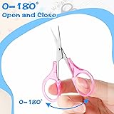 【Multipurpose】This small embroidery scissors set contains 4 pairs of brightly colored scissors, They are purple, orange, pink, and blue. Both pairs of tiny scissors feature sharp, straight tips, making them ideal for paper cutting, scrapbooking, and cutting out details in artwork. 【Small, Compact, and Portable】This set of small precision scissors is compact in size, each pair measures 8.5x4.5cm/3.34x1.77 inches. Detail scissors can be easily stored in a craft bag with other DIY tools. Due to their portability, these little scissors can also be kept in the kitchen for emergencies for quick use. Small sewing scissors are the perfect size for a variety of tasks including cross stitch, embroidery, knitting, sewing, cutting thread, fabric and yarn. 【Protective Caps】These small craft scissors caps not only ensure safety during use, but also effectively protect the sharp tips of the scissors when they are not in use. Sharp small scissors Ideal for crafting enthusiasts, they fit conveniently into a purse or craft box, ensuring safe storage and easy portability of your scissors. 【Precision Stainless Steel Blades】This crafting scissors is made of high-quality stainless steel and uses a high-temperature heat treatment process to enhance the sharpness and durability of its blades, making them less likely to dull. Travel scissors of different colors can be classified and used according to their uses, making them easy to distinguish and manage. 【Sharp Edge Design】These cutting scissors are perfect for handcrafting needs, their edges and tips are very sharp and can easily cut small lines in various materials. The unique design enables precise cutting in small spaces, making the operation smoother and more convenient.