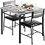- 3-PIECE DINING SET: This functional dining table set includes a dining table and two dining chairs. The small dining table fits 2 people for quick workday snacks, morning coffee, or couple gatherings.Chairs offer support with high backrests and thick padded seats for comfortable seating