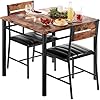 IRONCK Dining Table Set for 2, Small Kitchen Table with Upholstered Chairs Dinning Table Set for Kitchen & Dining Room, Compact Dining Set for Small Spaces, Rustic Brown