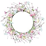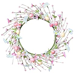 EASTER DECORATIONS: This Easter wreaths is made up of exquisite decorations such as artificial eggs, flowers, and green plants. Its unique design is perfect for creating a strong festive atmosphere for your front door or any indoor or outdoor space. SIZE: This Easter egg wreaths is 40cm/15.7 inches long and suitable for hanging anywhere in the home. It can add atmosphere to your vacation. Of course, this wreath can also be given as a beautiful gift to your family or friends. WIDELY USED: This Easter wreaths can be used to decorate front door, fireplace, porch, wall, officeS, etc. They can also be used for Valentine's Day, St. Patrick's Day, spring and summer indoor and outdoor decorations. EXCELLENT QUALITY: Our Easter wreaths are made of high-quality materials that are not easily damaged, handmade, and can be used for a long time. NOTES: The wreaths may be squeezed during transportation. So, when you receive our wreath, all you need to do is take it out and tidy it up a bit, sprinkle the wreath decoration (the stem of the wreath) around it, so you can get a perfect Easter hanging decoration.