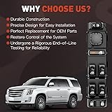 Perfect Replacement: When your factory window switch fails, you may lose control over one of these systems. Our window switch driver side have soft touch button with quick response to replace your defective window switch, provide consistent performance, allowing you to drive your vehicle smoothly every time. Its functions include: adjust mirror folding, adjust window, control window lock, control door lock Fitment: Fit for 03-06 Chevrolet Avalanche 1500/2500, 07 Chevrolet Avalanche, 03-06 Chevrolet Silverado 1500, 07 Chevrolet Silverado 1500 Classic, 03-07 Chevrolet Silverado 2500/3500, 07 Chevrolet Silverado 3500 Classic, 03-07 Chevrolet Suburban 1500/2500, 03-07 Chevrolet Tahoe, 03-06 Cadillac Escalade, 03-06 GMC Sierra 1500, 07 GMC Sierra 1500 Classic, 03-06 GMC Sierra 2500, 07 GMC Sierra 2500 Classic, 03-06 GMC Sierra 3500, 07 GMC Sierra 3500 Classic, 03-07 GMC Yukon, 03-07 GMC Yukon Xl 1500 OEM / Replace Part Number: 15883323, 901-075, 901075, DWS220, 1S15842, 10398568, 15109670, 15112974, 15125145, 15181220, 15202853, 15195303 Easy to Install: This driver side power master window switch fits, functions, and matches the original switch. Just remove your original master power window control switch and install it with factory harness connections. Has undergone simulation and endurance testing to ensure proper fit and performance. Package Content include 1 Power Window Switch and 1 Switch Removal Tool which can help you install it easily Buy with Confidence: Your satisfaction is our top priority, this is why we offer a 12-month warranty on our chevy master switch. In the unlikely event of any defects or malfunctions, simply reach out to our customer service team