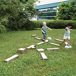 Improves spatial awareness and hand-eye coordination Made from Poly+, a composite material made from 30% less plastic and designed to withstand years of indoor and outdoor play 16 pieces: 8 straight log pieces, 2 Y-shaped pieces, 2 tall stumps, 2 short stumps, and 2 stones Straight and Y-shaped pieces measures 19" long; stumps measure 13" x 6"; stones measure 12" x 9" Ages 18 months and up