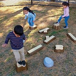 - 18 months and up. Children can practice balance as they gain confidence during gross motor activities using the Timber Trail Stepping Logs Set. The set's pieces can be arranged in endless combinations to create interesting paths and increasingly difficult obstacle courses. The textures on the logs and stones will enhance children's sensory experiences during play. Made from Poly+, this set is durable enough for indoor or outdoor use. Its non-slip bases won't scuff floors or move during activities. Straight and Y-shaped pieces measure 19" long, stumps measure 13" x 6", stones measure 12" x 9".