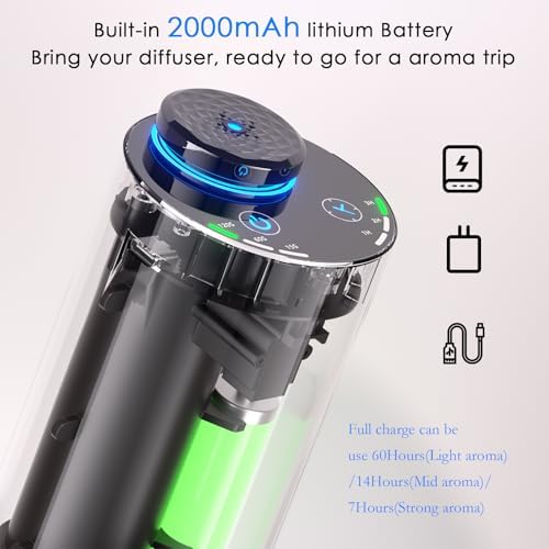 - 【Rechargable】Our diffuser is designed with a built-in 2000mhA rechargeable battery, Full charge can be use 60Hours(low mist)/14Hours(Mid mist)/7Hours(High mist). Let you freedom to use it anywhere, anytime
