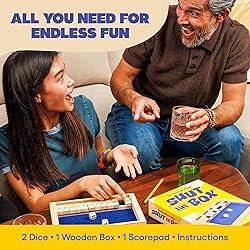 - Looking for a fun, engaging, and timeless way to spend time with friends and family? The Shut The Box Game Wooden Edition is the perfect solution! This classic wooden activity table combines strategy, luck, and mental agility, making it an ideal addition to any collection of game room games or travel games for adults. The Shut the Box dice game is simple to learn but offers fun for players of all ages. Players take turns rolling the dice and ""shutting"" numbered tiles corresponding to the roll. The goal is to close all the numbers, requiring a blend of strategy and chance. This numbers game is not only entertaining but also a great way to improve mental skills, making it one of the best math games for kids and a perfect activity for developing number recognition and addition skills. As one of the best dice games for families, Shut the Box fosters friendly competition, creating bonding moments for everyone. It's also a great choice for kids board games ages 8-12, offering a fun yet educational way for kids to practice their math skills. The game's simplicity makes it a fantastic option for games for 2 players, whether you're looking to enjoy a relaxing evening or a competitive challenge. This Shut The Box dice game is not only a favorite among families but also a popular choice for bar games or casual gatherings with friends. It is a fantastic way to bring out the competitive spirit in adults, making it one of the most entertaining games for adults and family alike. Whether you're playing at home, on vacation, or at a pub, it'll keep everyone engaged. Perfect for game lovers, this is an elemental game that blends fun, strategy, and learning. It can be enjoyed as one of the ultimate brain games that promotes focus and quick thinking. Whether you're challenging a friend or playing as a family, Shut the Box will quickly become a beloved addition to your collection of wooden games and dice games for kids. Get ready to outsmart your opponents, improve math skills, and enjoy hours of fun!