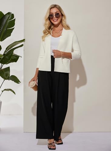 GRACE KARIN Women Sweater Blazer 3/4 Sleeve Cropped Cardigan Lightweight Notch Collar Knit Blazer Jacket Business Casual