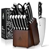 Arrtcy Knife Set with Block, Kitchen Knife Set 15-Piece with Sharpener - High Carbon Stainless Steel Dishwasher Safe Knives with Ergonomic Handles for Chef & Home