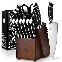 - ARRTCY Knife Set with Block, 15 Pieces Kitchen Knife Set with Built-in Sharpener, High Carbon Stainless Steel Ultra Sharp Blades, Triple Rivet Ergonomic Handle, Dishwasher Safe Chef Knife Set,black