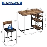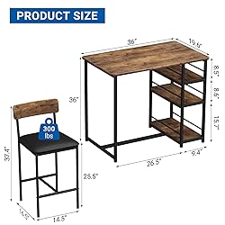 ERGONOMIC MASTERPIECE: Crafted from premium MDF board and solid steel, this dining set boasts a sturdy frame designed for a long lifespan. The 2 upholstered dining bar stools feature thickly padded seats, ensuring continuous comfort that surpasses traditional chairs. UNPARALLELED DURABILITY: This kitchen table set is built to last, with a strong metal frame that guarantees excellent stability and a longer service life. Made from high-grade MDF board and a thickened steel frame with reinforced pipe walls, this set is a reliable choice that will remain a cherished favorite for years to come. Each bar chair supports up to 300 LBS. SPACE-OPTIMIZED DESIGN: The two dining bar chairs can be neatly stored underneath the rectangular dining table, providing space-saving convenience. This set is an ideal solution for small spaces such as condos, kitchens, dining rooms, studios, or apartments. Dimensions: Table - 36.19 in L x 19.69 in W x 36.19 in H / Chair - 14.59 in L x 16.59 in W x 37.49 in H. CONVENIENT STORAGE SOLUTION: On one side of the small kitchen table, we've added three tiers of storage shelves to accommodate your tableware, condiments, and snacks. Fences on three sides of each shelf prevent items from falling, ensuring a clutter-free dining experience. LOW-MAINTENANCE ELEGANCE: The kitchen table set's surface is coated with a waterproof and anti-corrosive finish, allowing for easy cleanup of spills, sauces, and dust. This sturdy surface is designed for long-term use without damage. HASSLE-FREE ASSEMBLY: With easy-to-follow instructions and the included tools, setting up this dining table set is a breeze. Enjoy a seamless assembly experience and start savoring meals in comfort and style.