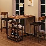 GarveeHome Dining Table Set for 2, Counter Height Kitchen Table with 2 Upholstered Bar Stools, Dining Table and Chairs Set with Storage Shelves, for Small Space, Apartment, Studio, Retro Brown