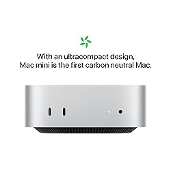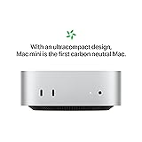 WHY APPLECARE+ — Get protection, service and support direct from Apple. AppleCare+ covers unlimited repairs for accidental damage, like a cracked display, and includes coverage for the hardware and battery. Get convenient service at Apple Stores and Apple Authorized Service Providers around the world or schedule a pickup at your home or office with Onsite Service. Help is easy with 24/7 priority tech support from Apple experts. SIZE DOWN. POWER UP — The far mightier, way tinier Mac mini desktop computer is five by five inches of pure power. Built for Apple Intelligence.* Redesigned around Apple silicon to unleash the full speed and capabilities of the spectacular M4 chip. With ports at your convenience, on the front and back. LOOKS SMALL. LIVES LARGE — At just five by five inches, Mac mini is designed to fit perfectly next to a monitor and is easy to place just about anywhere. CONVENIENT CONNECTIONS — Get connected with Thunderbolt, HDMI, and Gigabit Ethernet ports on the back and, for the first time, front-facing USB-C ports and a headphone jack. SUPERCHARGED BY M4 — The powerful M4 chip delivers spectacular performance so everything feels snappy and fluid. BUILT FOR APPLE INTELLIGENCE — Apple Intelligence is the personal intelligence system that helps you write, express yourself, and get things done effortlessly. With groundbreaking privacy protections, it gives you peace of mind that no one else can access your data — not even Apple.* APPS FLY WITH APPLE SILICON — All your favorites, including Microsoft 365 and Adobe Creative Cloud, run lightning fast in macOS.* IF YOU LOVE IPHONE, YOU’LL LOVE MAC — Mac works like magic with your other Apple devices. View and control what’s on your iPhone from your Mac with iPhone Mirroring.* Copy something on iPhone and paste it on Mac. Send texts with Messages or use your Mac to answer FaceTime calls.* CARBON NEUTRAL — Mac mini is carbon neutral. Learn more about Apple’s commitment to the environment at apple.com/2030. LEGAL DISCLAIMERS — This is a summary of the main product features. See below to learn more.
