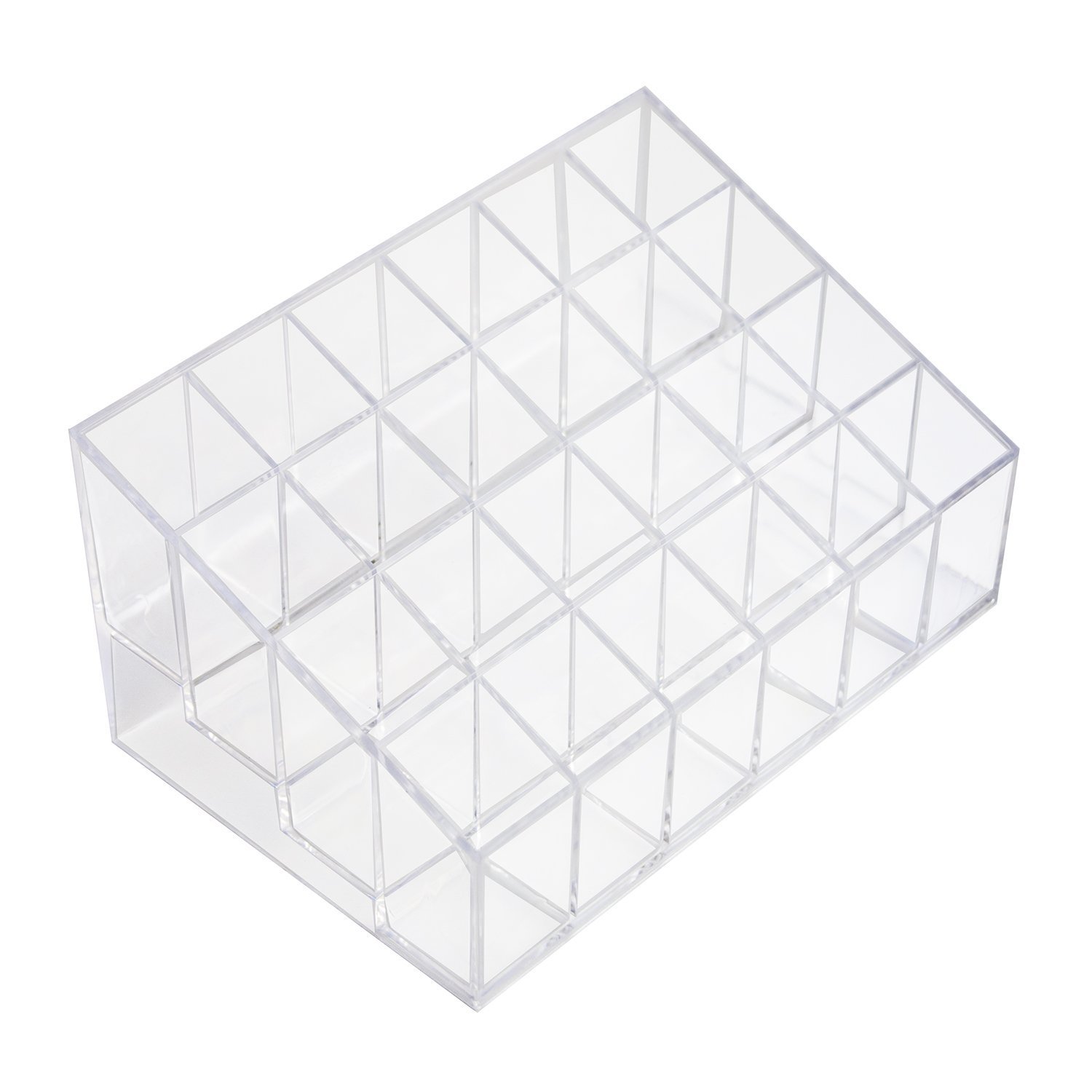 - Not Just for Lipsticks: These clear acrylic organizers can be used not only to store lipsticks, but also to store makeup supplies such as perfume samples, q-tips, nail polish, powder puffs and so on. They are also suitable for store small items like stickers, stationary items, desk/office supplies. Can be used on bedroom vanity, home, office desk at your will.