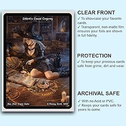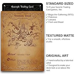 TEXTURED MATTE: Each pack contains 100 card sleeves with a textured matte surface, designed to give you an easy, effortless shuffle. OPTIMAL DISPLAY: A crystal clear front side ensures that you can show off your favorite trading cards in full fidelity. SAFE MATERIALS: Acid & PVC-free, so you can rest easy knowing your collectible cards are safe. UNIQUE STYLE: Features a unique, hand-painted artwork designed to inspire and impress. STANDARD SIZED: Sized to fit all of your favorite, standard-sized card games like: Magic: the Gathering (MTG), Pokemon, Lorcana, Flesh and Blood, Sorcery, Force of Will and More!