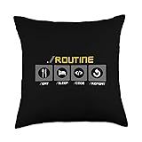100% Polyester ./ ROUTINE EAT SLEEP CODE REPEAT Fun meme for your favorite developer who codes all day! Whether you're a professional front-end, backend, full-stack, software, or UI/UX developer, you know how easy it is to obsess over codes and programming languages. Great for a computer programmer, coder, anyone into web development. Click on the brand name for more funny coding memes. 100% spun-polyester fabric Double-sided print Filled with 100% polyester and sewn closed Individually cut and sewn by hand Spot clean/dry clean only