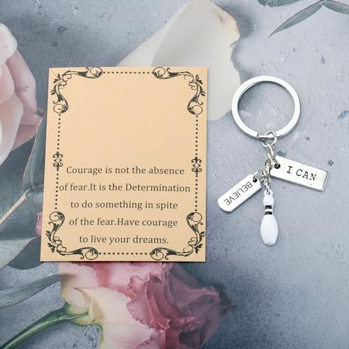 FEELMEM Bowling Ball Keychain Bowling Team Gifts Bowling Coach Keychain Bowling I Can Inspiration Gifts for Bowling Player (silver)