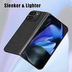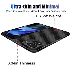 - 【Compatible Model】 This Stylish case only for Google Pixel 9 Pro Fold 2024. 【Gorgeous Slim】The case is only 0.72 OZ, 0.04 IN, 1:1 perfect fit doesn't impede port access at all or usability, and doesn't add any bulk to the Phone while ensuring a comfortable hold. 【Genuine Aramid Fiber】 Made of premium 1500D aramid fiber, which is lightweight and durable, which prevents scratches and scuffs, aramid fiber will not interfere with the signal. 【Screen and Camera Protection】Has 1.0 mm raised camera lips provide good protection for the lens, and the raised bezels around the screen against scratch from daily use.