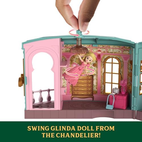 Inspired by Universal Pictures' Wicked, kids can relive the magic with a playset that features an iconic location in the movie – Glinda & Elphaba's dorm! The playset comes with a 2.75-inch Glinda doll, 3 play spaces and nine storytelling accessories to recreate iconic movie moments and beyond. Glinda can swing from the chandelier or spin on the platform to reveal her roommate, Elphaba's, hidden bed space! Dolls cannot stand alone. Colors and decorations may vary.