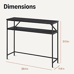 Amazon Basics Rectangular Console Table with Storage Shelf, Steel Frame, 39.4" W x 31.5" H x 11.8" D, Black