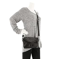 Leather exterior with stud details Zip pockets and closure 8"Lx2"Dx6"H