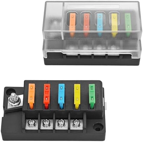 - Universal Application: This 4-circuit fuse box can be widely used in cars, trucks, SUVs, RVs, vans, etc. Each fuse of the 4-circuit fuse box can be connected to different electrical circuits, such as car dome light, car headlight, wide light, fog light, warning light, car refrigerator, car charger and car fan, car TV and so on.