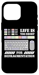 "Life Is Too Short For Defragmentation" features a bold design with a laptop displaying a colorful fragmented bar, humorously highlighting the efficiency of Linux systems. A perfect gift for Linux enthusiasts, system administrators, software developers, IT professionals, and tech-savvy individuals who appreciate operating system humor. Two-part protective case made from a premium scratch-resistant polycarbonate shell and shock absorbent TPU liner protects against drops Printed in the USA Easy installation