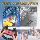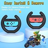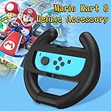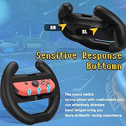 - 2Pcs steering racing wheel compatibe with Nintendo Switch and Oled Joy-con controller, switch racing wheel design for Mario Kart 8 Deluxe. Product Features: Portable and easy-to-use switch steering wheel is a essential accessory for Nintendo multiplayer games. Responsive switch racing wheel button relaxes your fingers and brings a more immersive gaming experience. Switch steering wheel is design for Mario Kart 8 Deluxe, circular design gives you a realistic driving experience. Zero fingerprint, environmentally friendly ABS material, no need to worry about deformation, dents, etc, more effectively protecting your switch controllers. Notice: One steering wheel for one switch controller. Includes two switch steering wheel, switch controller not included.