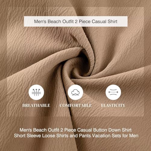 Men's Beach Outfit 2 Piece Casual Button Down Shirt Short Sleeve Loose Shirts and Pants Vacation Sets for Men