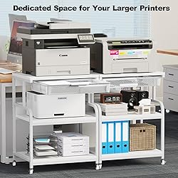 - EasyCom Large Printer Stand with Drawer, 5-Adjustable Heights 3 Tier Printer Table with Wheels, Rolling Printer Storage Cart with Storage for Printer Scanner Fax Home Office Use White