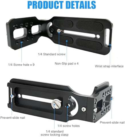 - 【Extension use】With multiple 1/4'' screw holes, the dslr camera l bracket can install the microphones, speedlite, panel lights, field monitors and more photographic accessories, convenient for outdoor photography, Instagram IGTV live streaming and any video shooting.