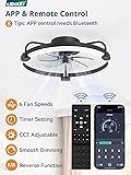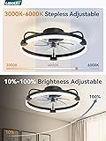 LEDIARY Ceiling Fans with Lights and Remote, 20'' Low Profile Ceiling Fan with Light, 3000-6000K Dimmable Fandelier LED Fan Light, 6 Wind Speeds, Black Modern Flush Mount Ceiling Fan for Bedroom