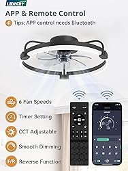 Stepless Dimming: Our ceiling fans with lights has 3 color temperature from warm (3000K) to white light (6000K), brightness from 10%-100% with 2800LM and light memory function Remote and App Control: Our ceiling fan can be controlled by a remote / APP, the fan and lights receives data 360° in all directions and can be controlled separately. 6 speeds, LED Dimmable, timer setting, customize the mode you need as you like 6 Speeds and Low Noise: Our ceiling fans feature a 7-blade design with 6 wind speeds. The pure copper motor runs smoothly, with strong wind and low noise. And canceled the beeping sound when the remote control transmission signal Reversible DC Motor: Our flush mount ceiling fan offers 2 airflow modes. It runs downdraft cool airflow during summer, updraft airflow in winter.The pure copper motor runs smoothly, provides strong wind power Easy to Install: The instructions we provide contain detailed installation guide video that are easy to follow and can be completed in a short time. We provide 2-year support. If you have any issues please tell us, we'll reply within 24 hours