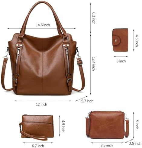 2E-youth Purses for Women Large Tote Women's Handbag Set Faux Leather Hobo Crossbody Bag 4pcs