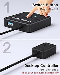 Share Printer Devices: One click to switch connection status, this compact USB 3.0 Switcher allows you to share a USB device such as printer, scanner, mouse, keyboard, card reader, flash drive and other USB deivce between 2 computers, so that multiple devices can be shared between 2 computers. Package comes with Desktop Controller. 5Gbps Fast Data Transfer Speed: The USB Switch supports data transfers up to 5Gbps and is backward compatible with USB 2.0 and USB 1.1 devices.USB 3.0 is more than ten times faster than the previous USB 2.0 standard. This means you can transfer a large HD movie in just a few seconds. The blue LED will indicate a running computer. Do not press the toggle button at will during data transfer. One-Button Switch: The USB switcher 2 computers only need plug and play, No extra power supply is required, no need to install drivers. USB 3.0 switch with Button and LED indicator lights, you can easily switch between 2 computers by a single click on the button, and the LED indicators make it easy to know which computer is in control.(NOT included USB 3.0 Cable), Desktop controller included, making your work more efficient and your desktop tidier. Wide Application: The USB keyboard mouse switch is ideal for sharing devices such as a printer, scanner, mouse, keyboard, U-disk, and other USB devices between 2 computers. No Worry to Buy : Lecnvuo offers an 12-month warranty and lifetime technical support, so if you have any problems with your product, please feel free to contact us by email and we will get back to you as soon as possible within 18 hours.