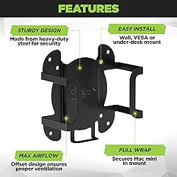 - Computer Wall Mount, VESA Mount, Under Desk Mount for Apple Mac Mini M4 Computer Organize your workspace with the HIDEit Mini4, the ultimate mount for the Apple Mac Mini M4 (2024). This durable steel mount offers versatile installation options: wall mount, under-desk mount, or VESA mount behind your monitor. Designed for secure fit + proper airflow, it's ideal for creating a clean, modern setup at home or in the office. Perfect for professionals and tech enthusiasts, the HIDEit Mini4 is your go-to solution for Mac Mini organization. Wall, under-desk, or VESA mount. VESA Compatible: 75mm + 100mm (M4) Easy access to ports and cables. Made from 16-gauge, cold-rolled steel for durability. Powder coat finish protects Mac mini from scratches. Quick and easy to install. Stud mounting optional. Includes drywall screws, anchors and VESA screws.