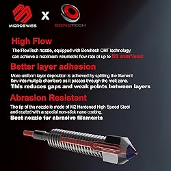 - Microswiss and Bondtech have partnered to bring the High Flow, Hardened Tip CM2 nozzle to the FlowTech ecosystem. This new nozzle incorporates proprietary CHT technology, specifically designed to enhance the filament flow rate. Core of the nozzle is made of high-temperature Copper Chromium Zirconium and plated with an Electroless Nickel Plating. This special alloy retains its strength at much higher temperatures compared to a regular copper alloy. The tip of the nozzle is made of M2 Hardened High Speed Steel and coated with a special WS2 nonstick nano coating.