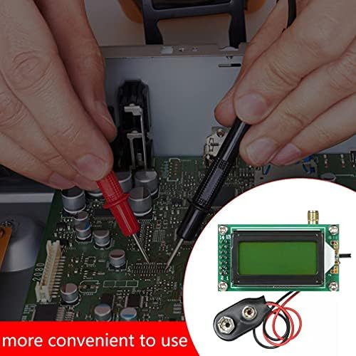 Features:Higher reliability and durable quality.0802 LCD display, low-power consumption.Standard interface for easy connections with other tests or antennas. Input is via an SMA jack (female).Package include: 1 * High Accuracy Frequency Counter.Specifications:Color: Dark GreenMaterial: PCB + FR4Power Mode: 9V Battery (Not Included)Display: 38 * 16mm LCD DisplayDisplay: Digital 0802 LCDTemperature: When operating: 0~40°C, when stored: -30~60°CWorking elevation: 0 to 2000 metersRelative humidity: non-condensing Working current: typical working current 30mAFrequency Range: 1~500, 100Hz resolutionItem Size: 60 * 33 * 26.5mm / 2.36 * 1.30 * 1.04inItem Weight: 42g / 1.49ozPackage include:1 * High Accuracy Frequency Counter