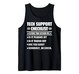 Grab this funny Tech Support Checklist Art for your programmer nerd dad, mom, husband, brother, friend or relative! It's the perfect geek gift idea & present for birthday, father's day And mother's day! Lightweight, Classic fit, Double-needle sleeve and bottom hem