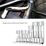 - Item Type: Oxygen Sensor Removal Socket Tool Material: a high-strength Alloy Color: Silvery Base Size: 3/8in——10mm / 0.4in, 11mm / 0.4in, 12mm / 0.5in, 13mm / 0.5in, 14mm / 0.6in 1/2in——17mm / 0.7in, 19mm / 0.7in Package List: 7 x Wrench1 x Base
